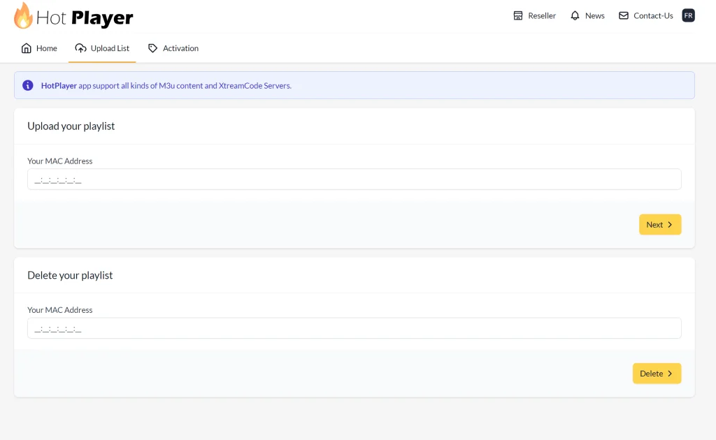 HOT IPTV är en av de mest avancerade IPTV‑apparna men är ändå relativt enkel att komma igång med. För att lägga in din spellista behöver du använda appens officiella webbportal:
