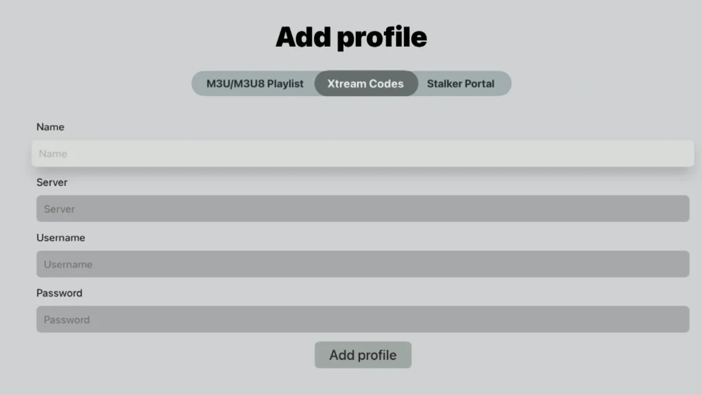 Välj alternativet “Xtream Codes”.