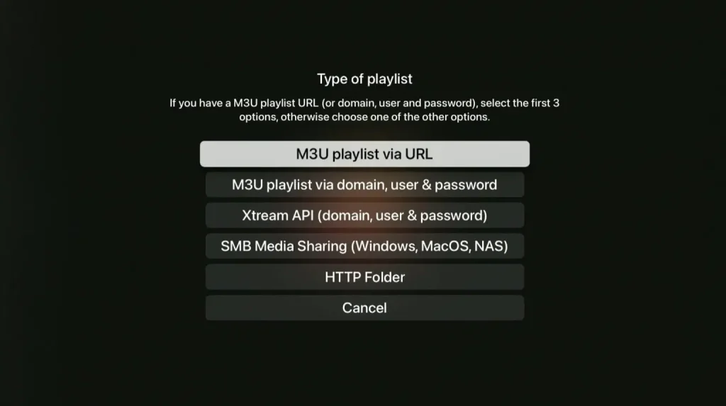 Öppna IPTVX-appen och välj alternativet “Add Playlist”, därefter väljer du “Xtream API”.