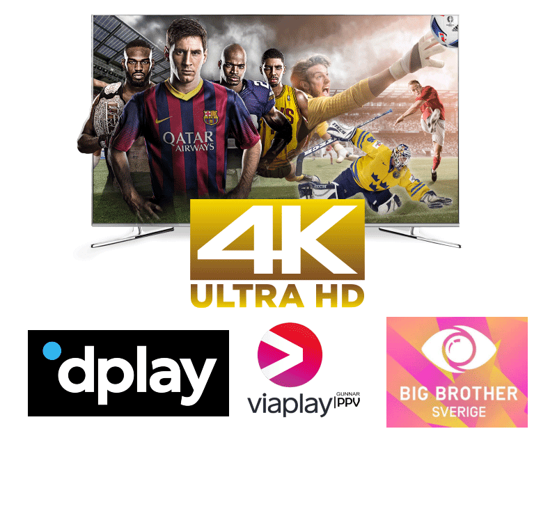 Med oss ser du Sport, Film & Serier i 4k! Så som Viasat Ultra, MovieTime 4K, och självklart våra 4K filmer i Biblioteket.